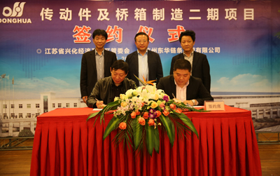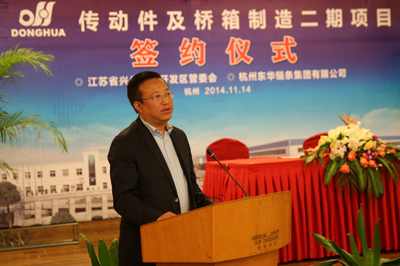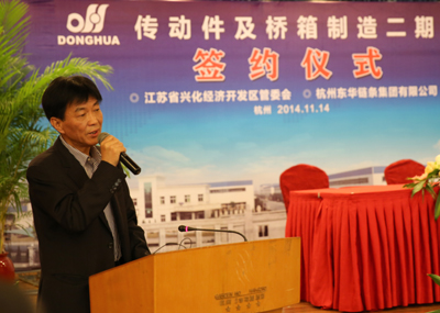 簽約儀式上,董事長宣碧華致辭。他說,東華2007年收購興化齒輪廠,至今已有8年,一直得到了興化市委、市政府和興化開發(fā)區(qū)的大力支持,使一個當時不太景氣的企業(yè),得到了新生、發(fā)展。現(xiàn)在不僅是鏈條行業(yè),齒輪、鏈輪、變速箱、橋箱將同步發(fā)展。今天簽約的興化這個項目,我們考慮了東華發(fā)展的增量和存量。增量是我們希望到2020年生產(chǎn)總量翻一番,興化的這個土地就是我們的增量空間。存量有兩塊,一是原來我們在外采購的原材料、零部件,拿回來放在興化生產(chǎn),保證質(zhì)量;二是現(xiàn)在臨平三廠區(qū)制造鏈條要退二進三,騰籠換鳥,把騰出來的廠房做新的項目,比如傳動件超市、輸送機械、CVT變速箱,所以今天我們在這兒舉行簽約儀式,對東華來講是一個很好的發(fā)展機會,具有里程碑意義。