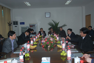 宣碧華董事長首先陪同徐書記一行到南區(qū)生產(chǎn)現(xiàn)場進(jìn)行了調(diào)研,隨后進(jìn)行座談。座談會上,宣董事長向徐書記一行匯報了東華集團(tuán)近年發(fā)展情況及未來發(fā)展目標(biāo),重點(diǎn)介紹了近年東華利用國際金融危機(jī)的有利時機(jī),實施“走出去”戰(zhàn)略取得的成效和下一步國際化戰(zhàn)略目標(biāo)。