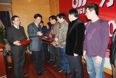 總經(jīng)理張世強向優(yōu)秀經(jīng)銷商代表頒獎