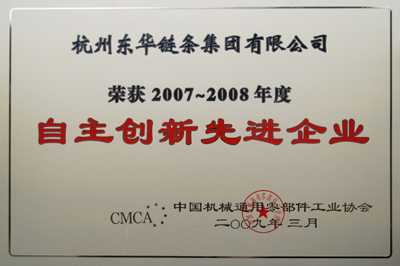 鑒于東華鏈條集團(tuán)在國內(nèi)鏈條領(lǐng)域中不斷自主創(chuàng)新,填補(bǔ)了多項國內(nèi)空白,為我國的鏈條事業(yè)作出了杰出貢獻(xiàn)。日前,中國機(jī)械通用零部件工業(yè)協(xié)會授予東華鏈條集團(tuán)“2007-2008年度自主創(chuàng)新先進(jìn)企業(yè)”榮譽(yù)稱號。