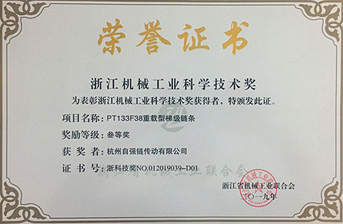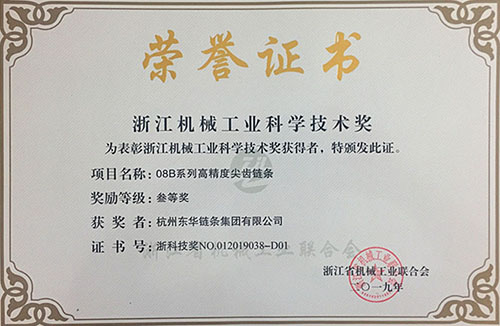 日前,浙江省機械工業(yè)聯(lián)合會通過視頻會議召開了五屆二次會員代表大會和五屆三次理事會。會上公布了54項產(chǎn)品及技術(shù)創(chuàng)新成果獲得“2019年度浙江機械工業(yè)科學技術(shù)獎”。東華自主開發(fā)的“08B系列高精度尖齒鏈條”和“PT133F38重載型梯級鏈條”兩項高端鏈條產(chǎn)品榮獲三等獎,這是東華產(chǎn)品創(chuàng)新項目連續(xù)八年榮獲浙江機械科技獎,也是獎項名單中唯一鏈傳動企業(yè)的高端產(chǎn)品獲獎。