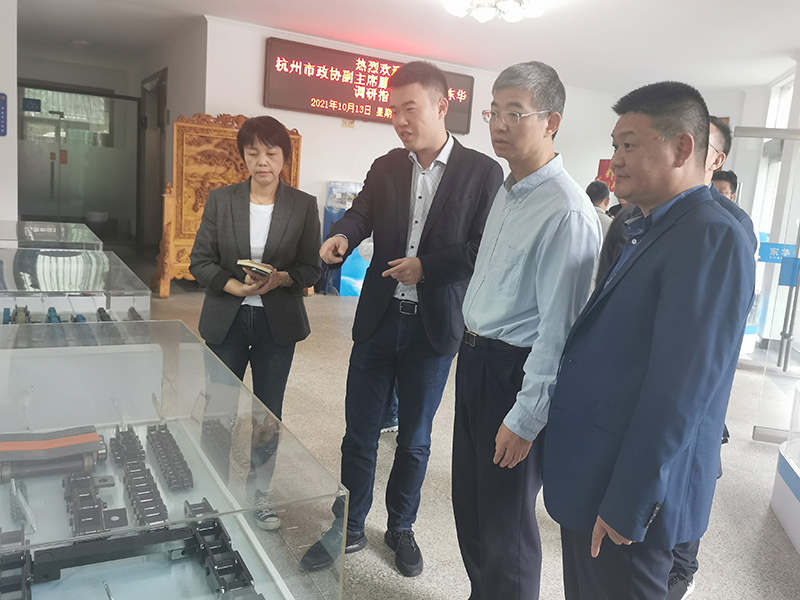 日前,杭州市政協副主席騰勇一行在開發區管委會產業發展局副局長黃亮等的陪同下,到東華調研。集團董事長宣成、副總經理廖杭州等接待。