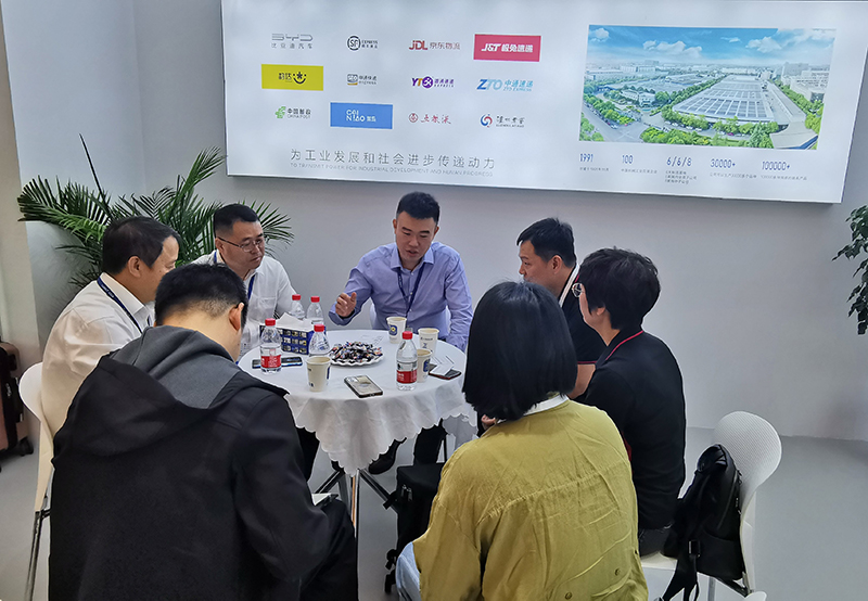 展臺前,參觀交流的客戶、觀眾絡(luò)繹不絕,國內(nèi)外市場部業(yè)務(wù)人員向大家介紹公司發(fā)展情況、制造技術(shù)、產(chǎn)品及應(yīng)用領(lǐng)域、質(zhì)量保障能力等,忙的不可開交。尤其是展會上最新一臺由傳動鏈、輸送鏈等多種鏈條組成的物流系統(tǒng)化設(shè)備,吸引了大量客戶和觀眾參觀、拍照、攝像,成為展會的一大亮點。