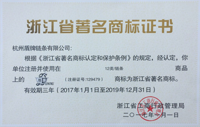 日前,公司旗下盾牌公司“盾牌”商標(biāo)被浙江省工商行政管理局認(rèn)定為浙江省著名商標(biāo)。