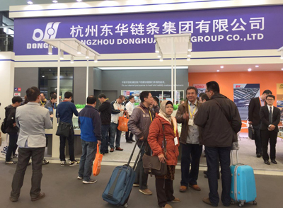 本屆展會上,東華總部與旗下盾牌公司、德國KOBO鏈條公司和日本EK公司同臺展出新品,展臺占地100多平方米,設計美觀、大氣。各公司均展出了最新的樣品,如總部的分動箱、板式鏈、工程鏈、農(nóng)機鏈等;盾牌公司展出了各種規(guī)格的標準鏈條和非標鏈條;德國KOBO公司展出了德國制造的工程鏈條、洗瓶機鏈條等新產(chǎn)品;日本EK公司展出了日本制造的輸送鏈、密封圈鏈條、沖壓印刷機鏈條等。這些精良的產(chǎn)品代表了當前各公司高端的制造水平,吸引了無數(shù)國內(nèi)外新老客戶及參觀者的眼光。