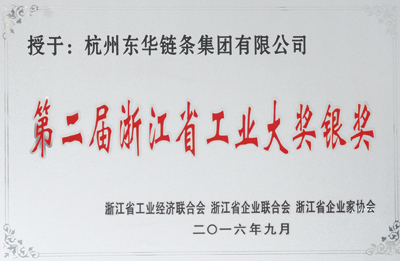 東華鏈條集團榮獲浙江省第二屆工業大獎銀獎