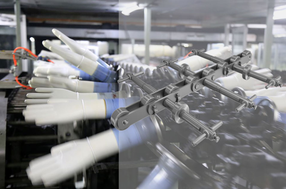 ● 橡膠手套鏈已經(jīng)形成系列化產(chǎn)品,通過(guò)特殊設(shè)計(jì),滿足橡膠手套生產(chǎn)線更長(zhǎng)、更快、優(yōu)質(zhì)高效的制造需求。