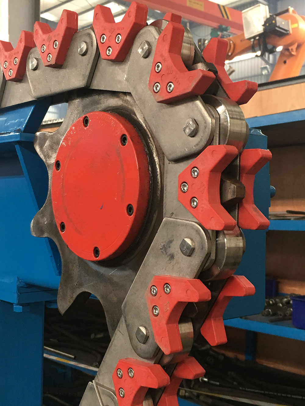 通過持續(xù)不斷的創(chuàng)新、研發(fā)、制造各類適用于冶金行業(yè)用的鏈條,包括輸送礦砂和廢料的板式輸送機(jī)用鏈條、生產(chǎn)鋼管和鋼棒等金屬冷卻輸送機(jī)鏈、以及拉拔鋼材用鏈條和各類特殊鏈條。