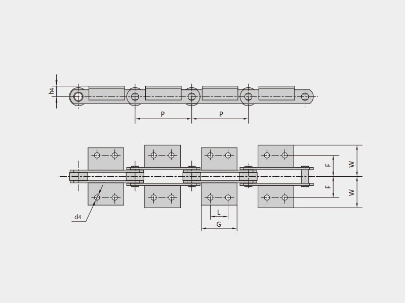 ● FV系列輸送鏈?zhǔn)侵告湕l節(jié)距為公制整數(shù)(節(jié)距范圍40mm~500mm的多種節(jié)距)的滾子鏈或套筒鏈,滾子有多種結(jié)構(gòu)形式,根據(jù)使用工況配置各種附件。